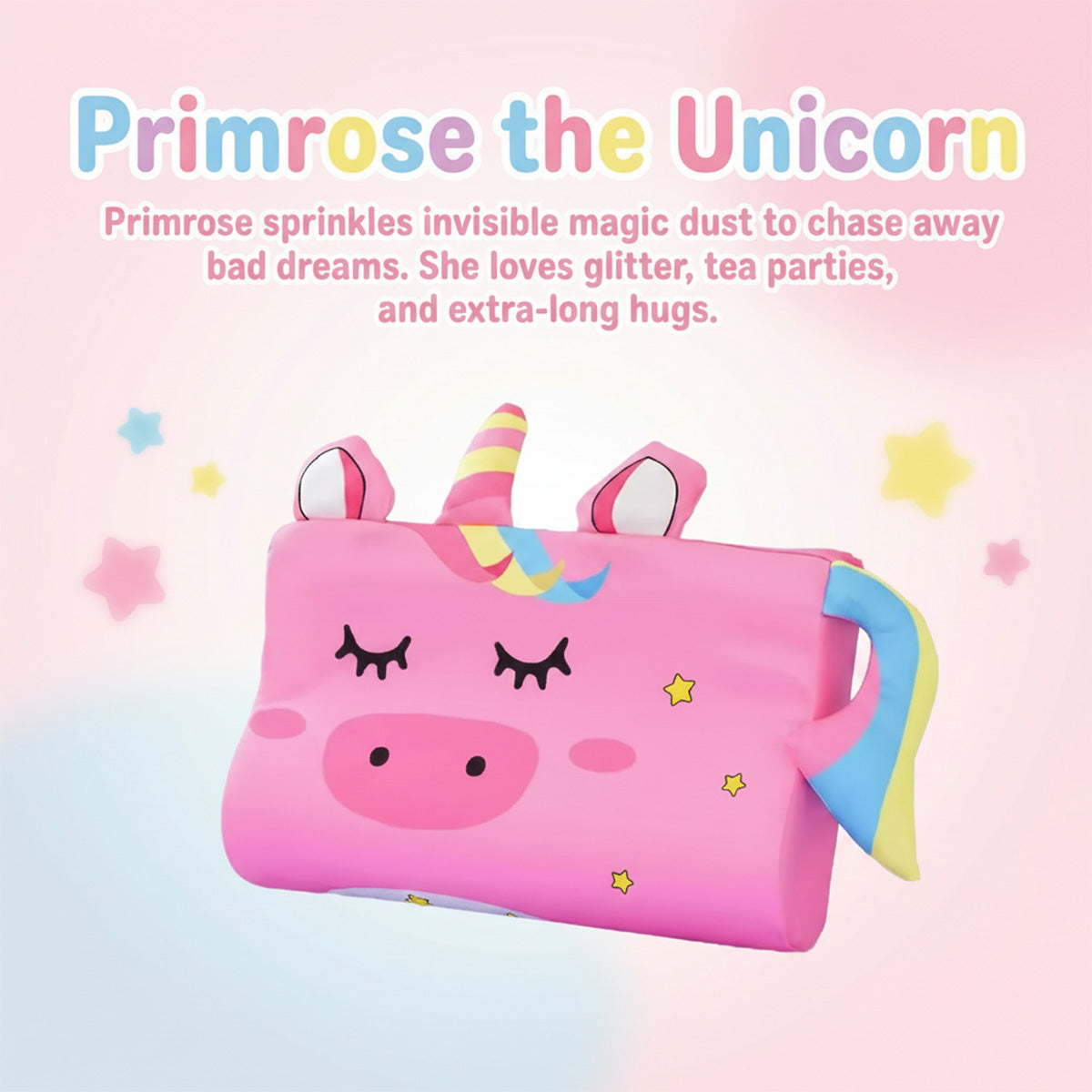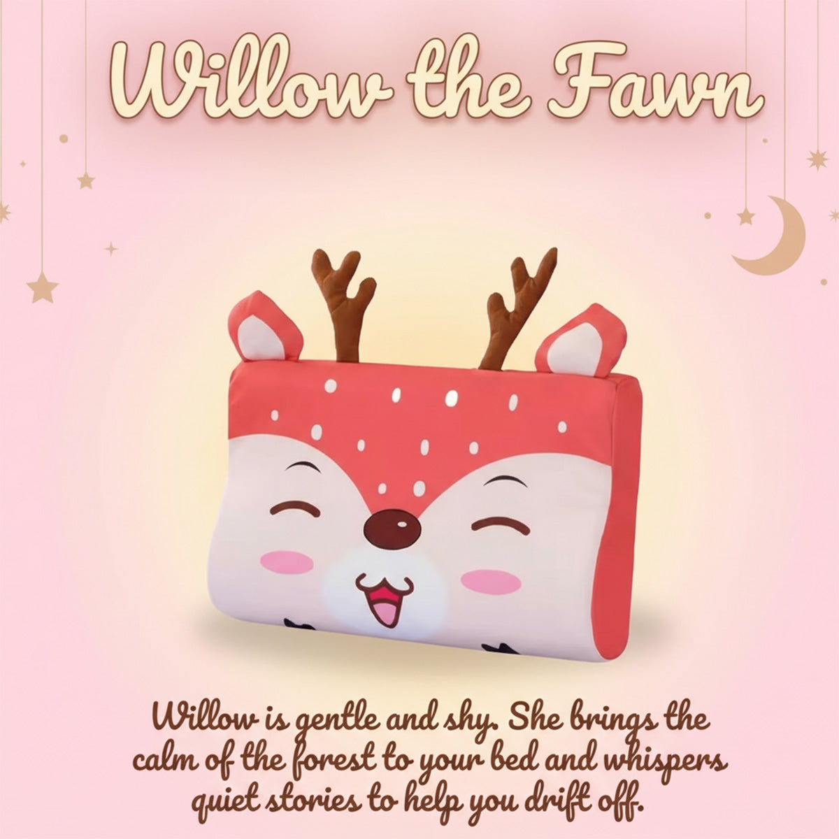 Sized for gentle head and neck support, designed to feel like a friend your child can trust at bedtime.